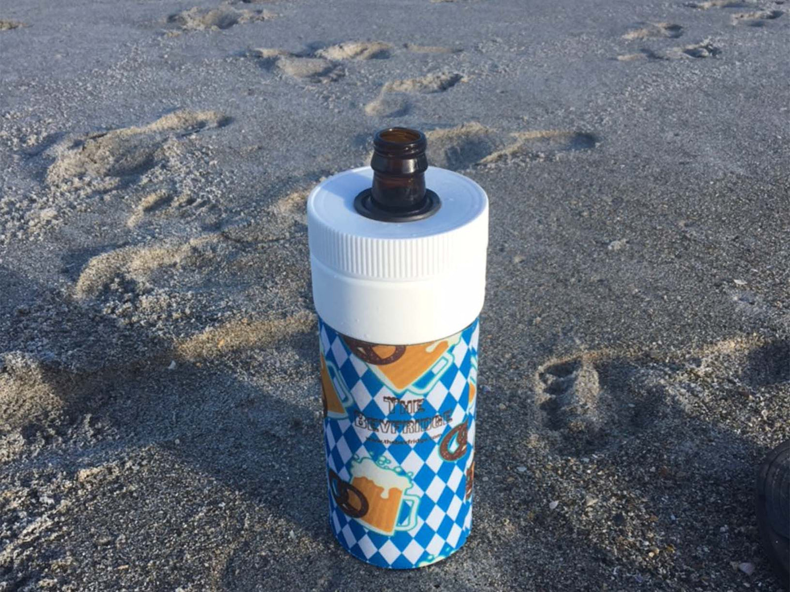 While watching a football game in the pool about 12 years ago, our inventor, Jeff Brouillette, had the issue as most have, that his beer was getting warm before he was able to finish it. So, he took a large cup from a race track store he had on a table nearby, cut a hole in the lid, and filled it with ice to create a prototype of Bevfridge, a sealable drink cooler without the mess. And the rest, they say, is history!